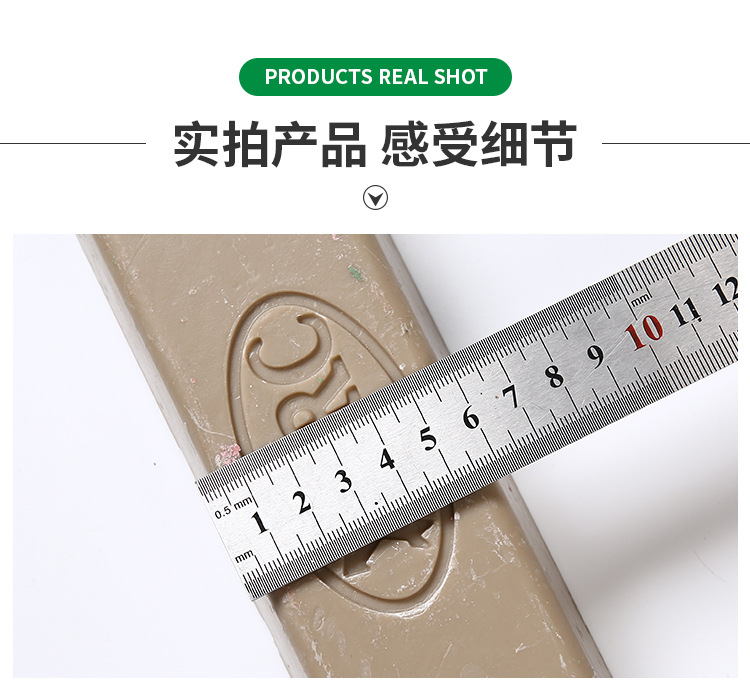 型號:5號黃臘。一般情況下用不同的顏色表示不同品種的拋光臘,避免使用時混亂。高含量的磨料可以加速整個拋光過程。這個過程是拋光臘拋光輪表面移動而使材料變得光滑。